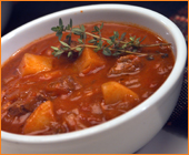 Polievka: Fazuľová kyslá / Mäsový vývar s rezancami 0,3l 1) Staročeský pivný guľáš s domácou knedľou 130g/200g 2) Syrovo-šunkový špíz, hranolčeky, tatárska omáčka 3) Dusené hovädzie líčka, zemiaková kaša, listový šalát 200g/200g 4) Staročeský pivný guľáš, listový šalát 130g/150g